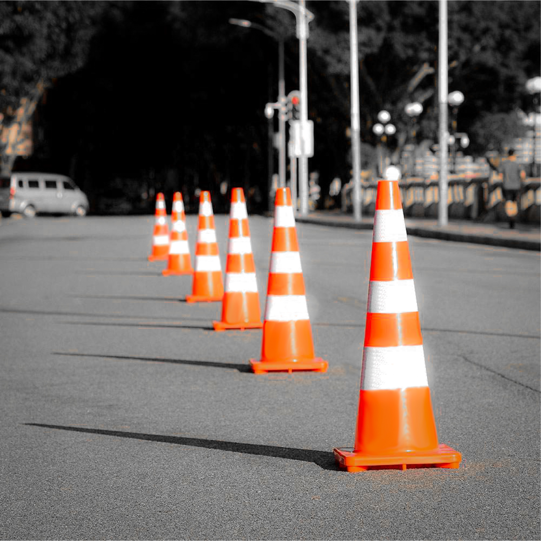 Conos, barreras, señalizadores y todo tipo de dispositivos para control de tráfico vehicular y peatonal.