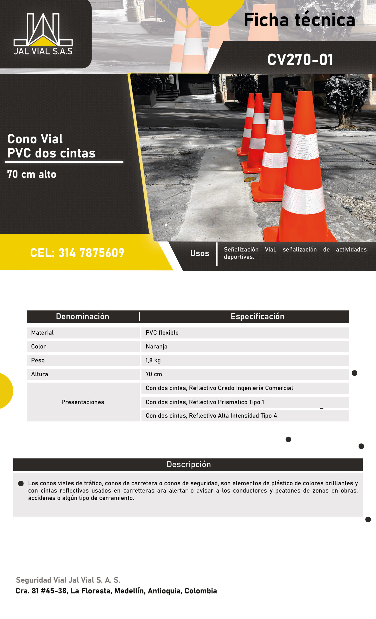 Los conos viales de tráfico, conos de carretera o conos de seguridad, son elementos de plástico de colores brillantes y con cintas reflectivas usados en carreteras para alertar o avisar a los conductores y peatones de zonas en obras, accidentes o algún tipo de cerramiento.