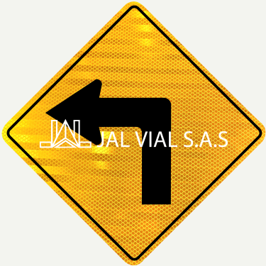 Esta señal indica que la curva es de características geométricas pronunciadas (generalmente con una deflexión mayor a 90°) y requiere una reducción significativa de la velocidad para transitarla con seguridad. Al ser una señal de código SP, su fondo es naranja fluorescente para garantizar alta visibilidad tanto de día como de noche en entornos de trabajo temporal.